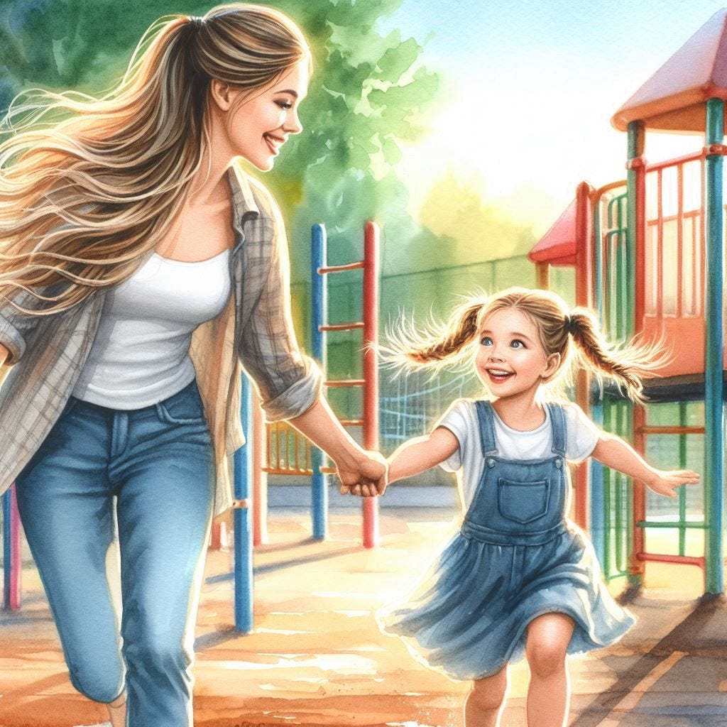 “I’m going to the playground, Mommy!” I hear her say. Her voice is like the morning bells of our neighborhood church — loud, but soothing. “Are you coming with me, Mommy?”